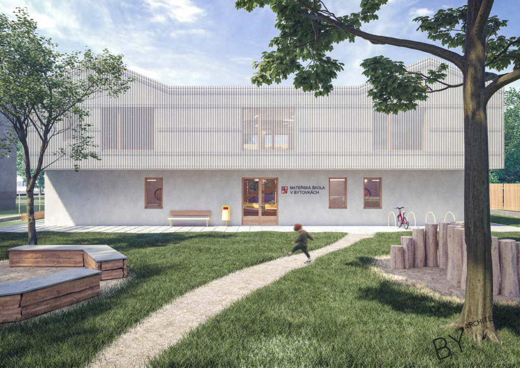 Nový projekt byl proto určen požadavky na rychlou výstavbu, nízkou cenu a tak, aby neobtěžoval místní obyvatele. Architektonická kancelář BY Architects proto navrhla elegantní moderní dvoupatrovou budovu o ploše 855 m2 se zahradou, která nijak nenarušuje zmíněný vnitroblok Bytovek. Také budoucí doprava dětí a rodičů je navržena tak, aby obyvatele okolních domů rušila co nejméně.